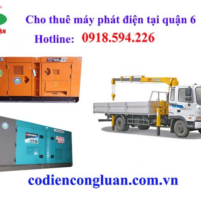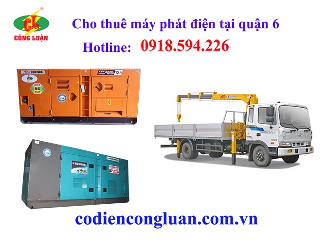 Công ty Cơ điện Công Luận chuyên cung cấp dịch vụ cho thuê máy phát điện tại quận 6 và các quận trong thành phố Hồ Chí Minh. Với tiêu chí tận tâm, chuyên nghiệp, nhanh chóng và an toàn chúng tôi luôn mang đến khách hàng dịch vụ cho thuê máy phát điện tại quận 6 một cách tốt nhất, kịp thời đáp ứng nhu cầu khi cần thiết.