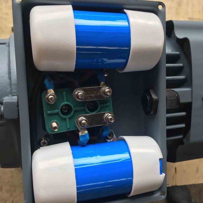 • Vỏ gang dày, cấp bảo vệ IP44, 2 tụ đề